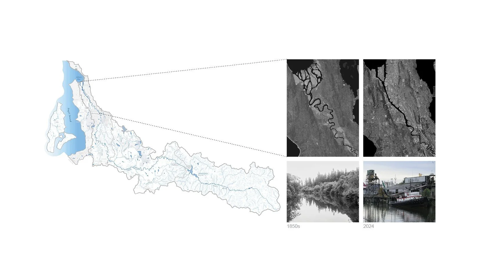 To begin, it explores a front line of ecological change, a tidal river/waterway (not unlike hundreds along the American coast) the Duwamish.